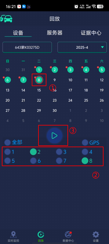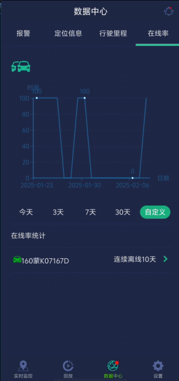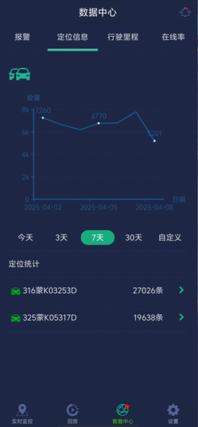 实时监控手机APP(CEIBA) 操作手册 1. 软件安装 安卓系统:移动端CEIBA Ⅱ软件的安装包由信息部提供。若无安装包,可联系信息部获取。下载安装包至手机后,依照提示进行安装即可应用。 苹果iOS系统:打开手机APP Store 搜索“CEIBAⅡ”APP下载即可安装应用。 1. 账号登录 在进行账号登录时,您需要输入服务器地址、账号以及密码。一旦这些信息被正确录入并保存,系统将能够记住它们,以便在下次登录时自动填充。 服务器地址为:116\.112\.208\.114 请根据您的实际账号信息进行输入以完成登录。若您没有账号或遗忘了账号密码,可以联系信息部进行账号重置。 1. 软件功能 1. 实时监控 登录CEIBA后,点击左上方的车辆图标,即可进行车辆检索和选择。选定车辆后,下方的视频按钮将启用,根据需要选择相应的视频通道,即可进行实时监控预览。    * 1. 监控回放 登录CEIBA后,在主页底部选择“回放”选项,在回放页面点击左上角进行车辆选择,随后选择所需的监控日期和视频通道,点击“播放”按钮即可开始观看。在视频回放过程中,您可以使用下方滚动条选择并回放特定事件。    * 1. 定位查看 车辆定位有两种查看方式:①登录CEIBA后,直接选择目标车辆即可实时查看其定位信息;②在实时监控预览界面,点击下方的定位按钮同样可以查看车辆的当前位置。   * 1. IP通话 登录CEIBA后,选择您需要进行通话的车辆,然后点击下方的对讲按钮,即可与驾驶员开启实时语音通话。 * 1. 文本消息下发 登录CEIBA后,选择需要下发文本的车辆,输入内容即可完成文本消息的下发;   * 1. 视频抓拍 登录CEIBA系统后,选择您需要抓拍的车辆,并指定相应的视频通道(单选),然后点击“抓图”按钮。抓取的图片可以保存或取消操作。   1. 数据中心 登录主页后,在下方的模块中选择数据中心。数据中心模块内包含报警、定位信息、行驶里程以及车辆在线率。 * 1. 报警数据 登录CEIBA系统后,进入数据中心模块,点击车辆图标以进行车辆选择。选择完毕后,系统将自动生成一个折线图表,该图表展示了从当日到30日内的数据变化,从而为决策者提供有力的决策支持。 * 1. 定位信息 定位信息汇总包括车辆从当天起至30日内所接收的GPS坐标数据。 * 1. 行驶里程 选择车辆后,即可呈现当日至30日内的一个里程折线图表,可直观地看到里程变化趋势,下方还有详细的里程数据汇总表,可查看每日的设备统计里程; * 1. 在线率 离线率允许管理者在指定的时间段内,检查设备的在线与离线状态,从而便于核对车辆的行驶数据,并提供必要的数据支持。